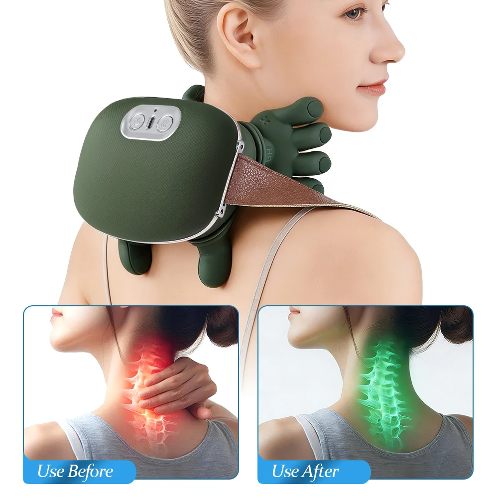 Bionic Neck Shoulder Massager Multifunctional 3-Level Cervical Massage Electric Heating Kneading Muscles Massage Neck Waist Leg