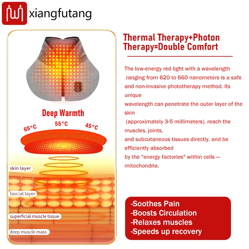 ● Heating Function: Delivers gentle heat quickly and evenly via built-in carbon fiber heating wires or red-light heating beads. It can improve poor local blood circulation from prolonged sitting, joint coldness in autumn and winter, and muscle stiffness caused by strain, while relieving soreness from fatigue, cold-dampness or inflammation. Suitable for daily maintenance, post-operative care and relaxation during work breaks.
