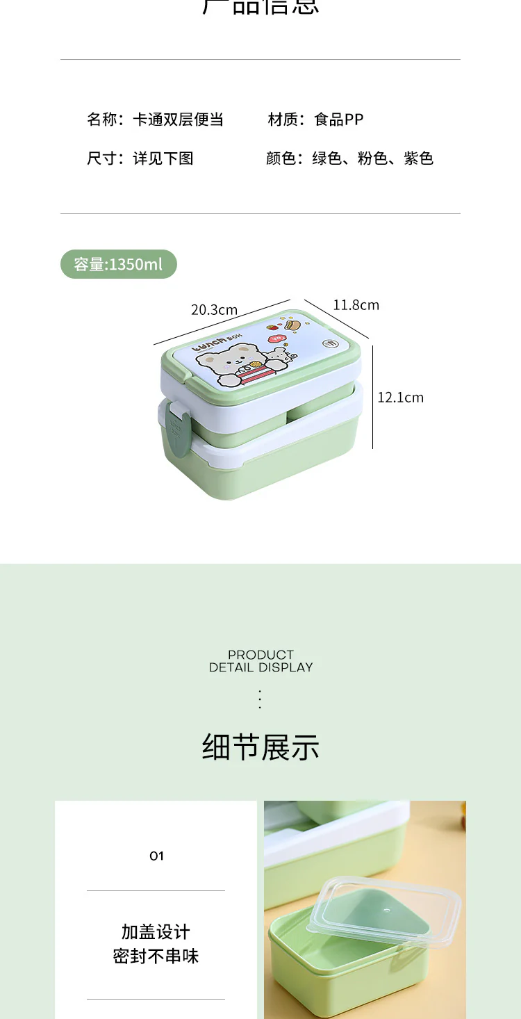 Food Storage Container Bento Box 2 Layers With Handle