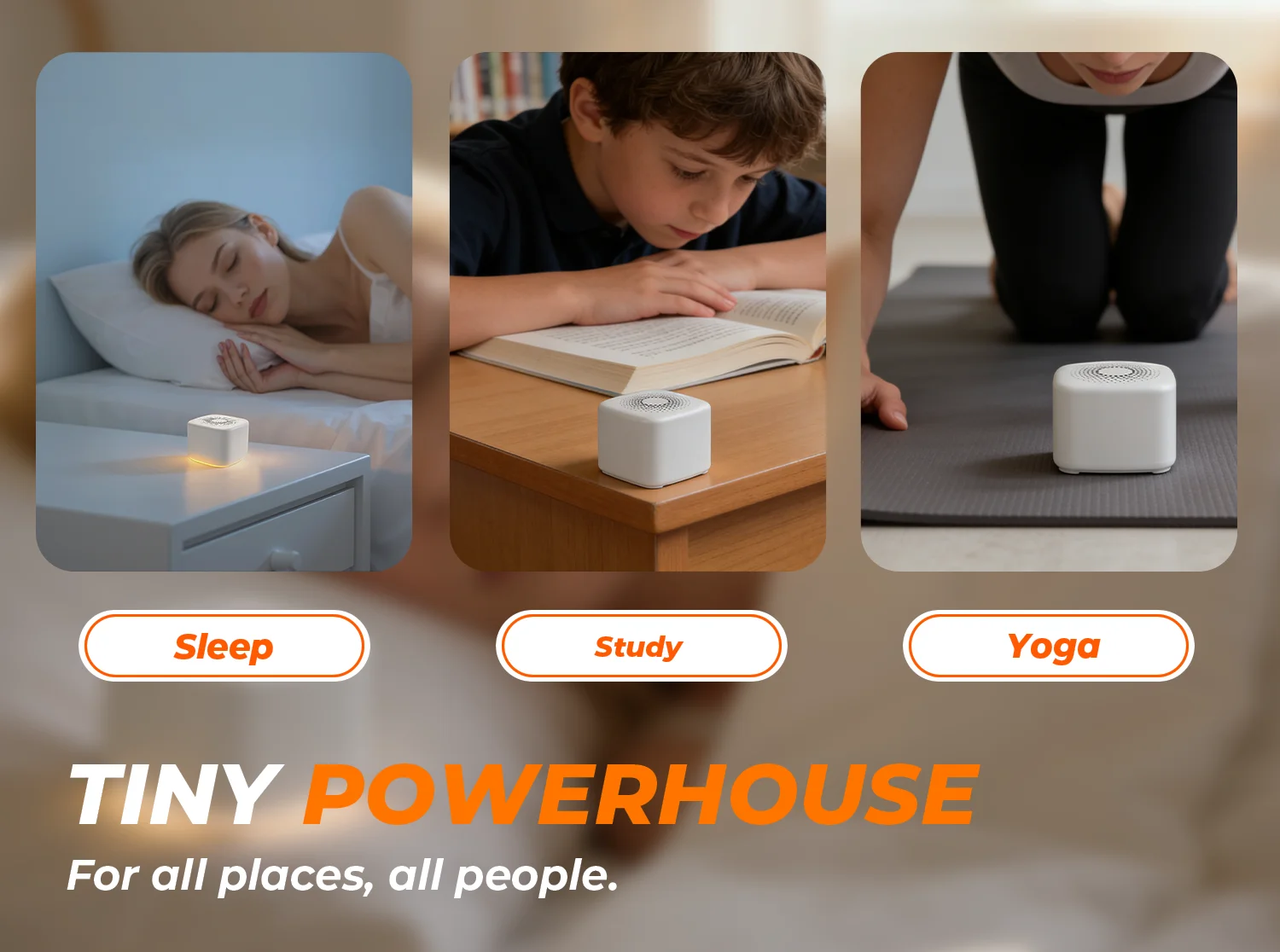 Tired of sleepless nights, noisy offices, fussy babies or chaotic travel? This ultra-compact white noise machine fits in your pocket, yet delivers powerful calm for every moment—whether you’re unwinding after work, focusing at study, soothing a fussy newborn or blocking hotel noise on a trip.